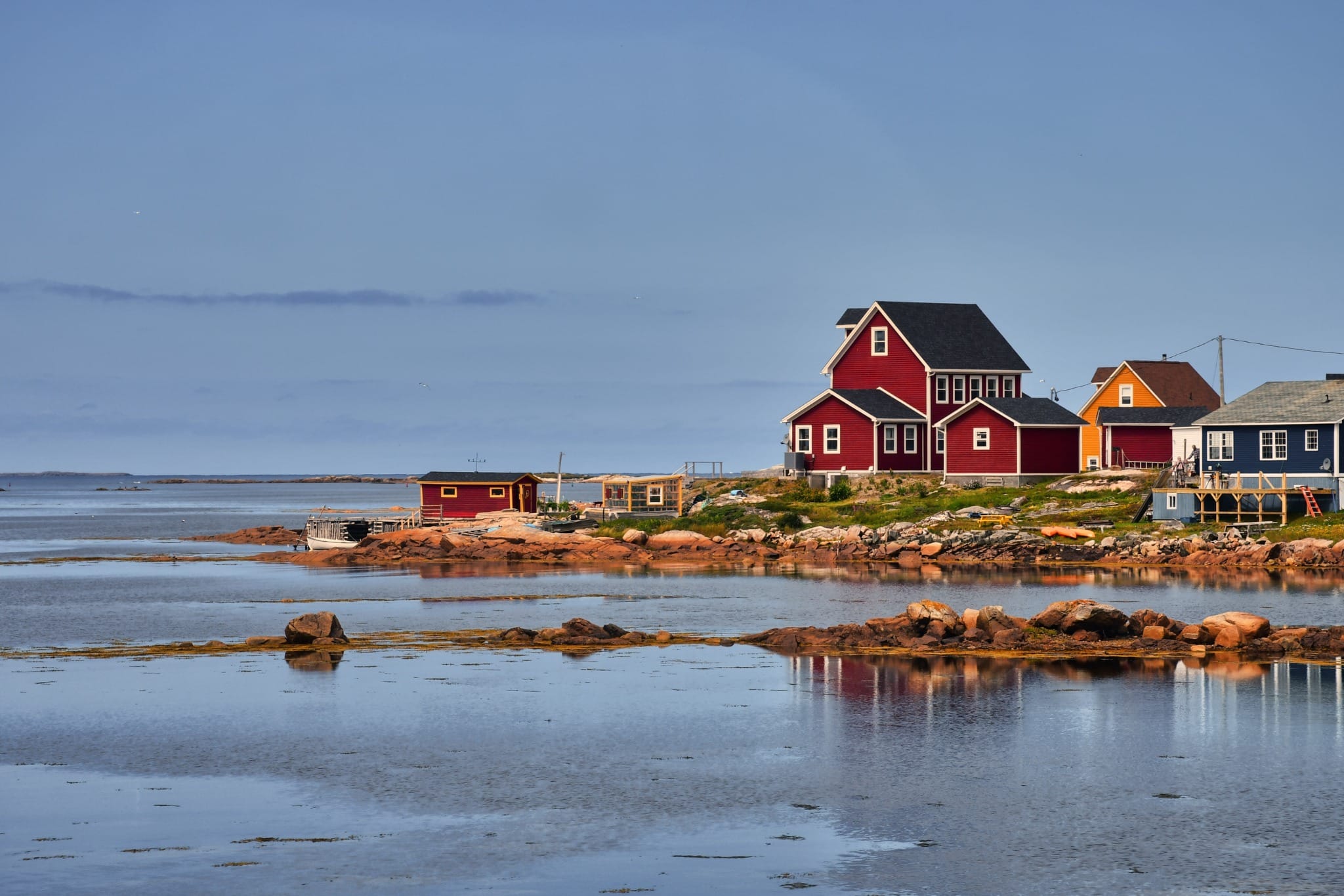 Newfoundland en Labrador bestaat uit twee duidelijk verschillende delen. Newfoundland is het eiland aan de oostkust, Labrador vormt het uitgestrekte vasteland aan de overkant van de Straat van Belle Isle. Het merendeel van de reizigers bezoekt het eiland, waar de wegen langs de kust slingeren en kleine gemeenschappen elkaar afwisselen. St. John’s is de hoofdstad en grootste stad, met een herkenbare haven, felgekleurde huizen en een compact centrum dat je te voet verkent.