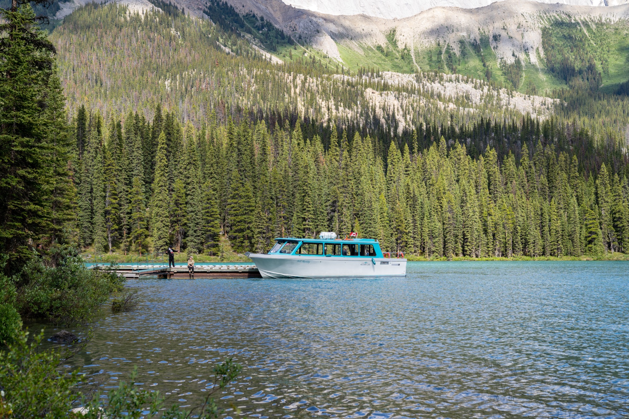 Naast bekende plekken zijn er in Jasper National Park talloze locaties waar je relatief weinig mensen tegenkomt. Maligne Lake trekt veel bezoekers, maar wie een afslag eerder neemt richting Medicine Lake, staat vaak bijna alleen langs het water. Dit meer verandert per seizoen van karakter. Soms staat het vol, soms is het bijna leeg doordat het water via ondergrondse kanalen wegstroomt.